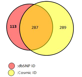 圖4. 突變細(xì)分種類(lèi)的位點(diǎn)數(shù)(經(jīng)過(guò)驗(yàn)證的位點(diǎn)) 7. 位點(diǎn)多,超過(guò)680個(gè)位點(diǎn),全部有對(duì)應(yīng)的Cosmic ID或/和dbSNP ID注釋?zhuān)?/span>