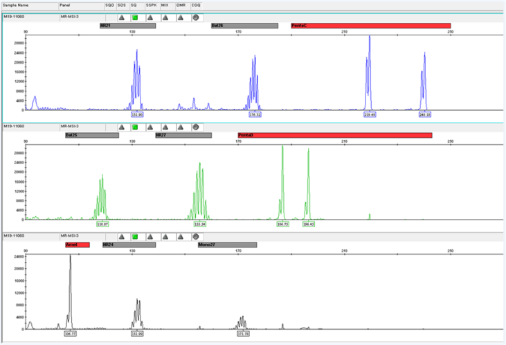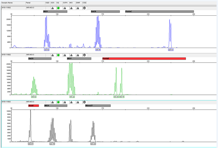 微衛(wèi)星是人類基因組的一段串聯(lián)重復序列,一般在1~6bp之間,又被稱作短串連重復(Short Tandem Repeats,STRs)或簡單重復序列(Simple Sequence Repeat,SSRs)。 微衛(wèi)星不穩(wěn)定(Microsatellite Instability,MSI)指的是微衛(wèi)星重復次數(shù)減少或者增加,微衛(wèi)星不穩(wěn)定的內(nèi)在機制是錯配修復(MMR)系統(tǒng)失調(diào),從而限制了糾正微衛(wèi)星自發(fā)的長度改變的體細胞突變的能力,體細胞突變積累,最終形成MSI。