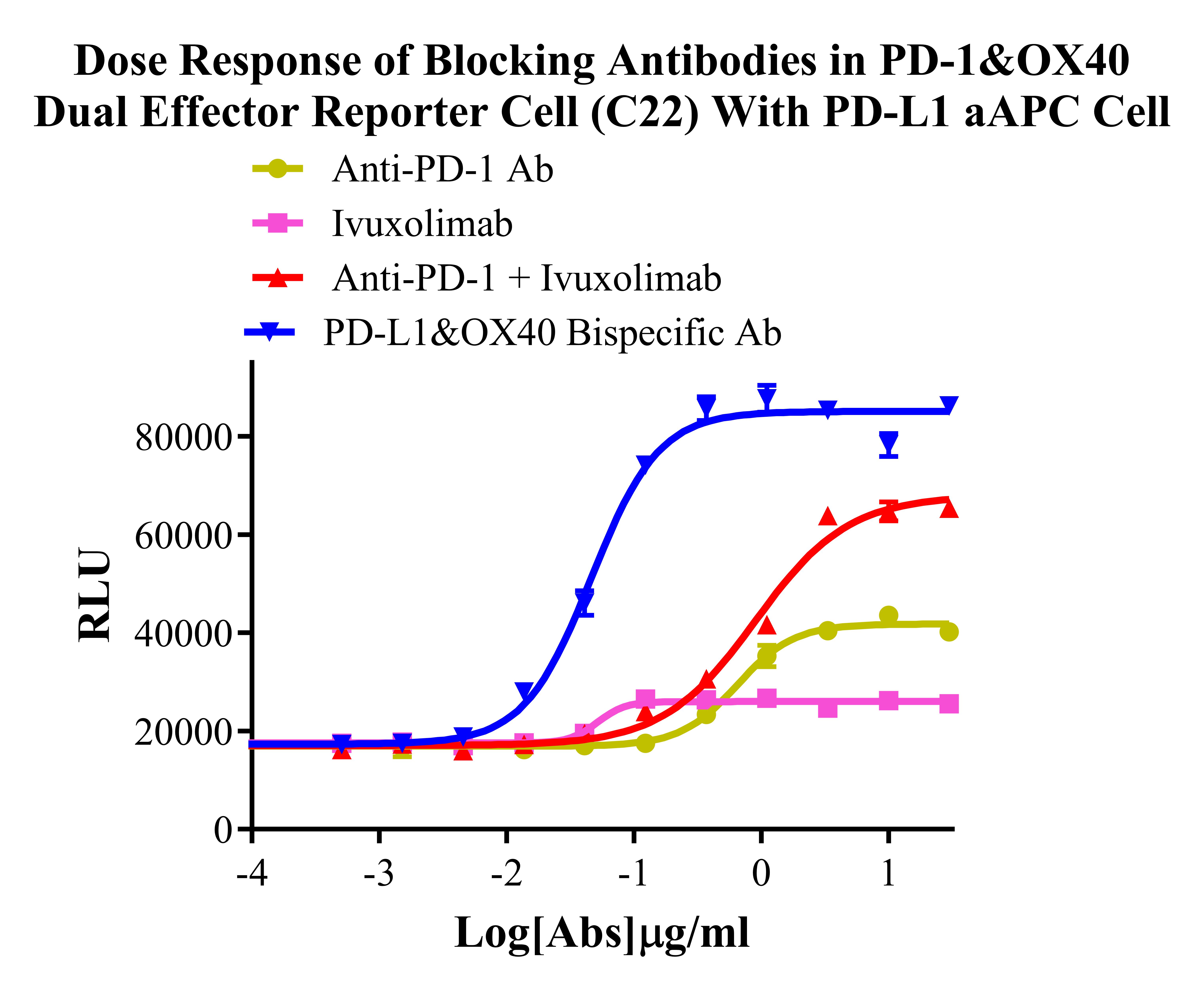 Figure 3. Dose Response of Blocking Antibodies in PD-1&OX40 Dual Effector Reporter Cell(C22) with PD-L1 aAPC Cell.