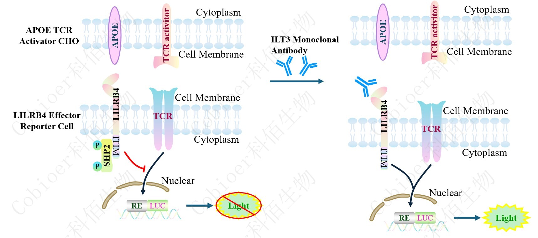 LILRB4 Effector Reporter Cell 報(bào)告基因藥靶模型很好的模擬了體內(nèi) LILRB4 的信號(hào)轉(zhuǎn) 導(dǎo)過程,原理見下圖所示。![]() ![]() Figure 1. LILRB4 Effector Reporter Cell 模型原理圖