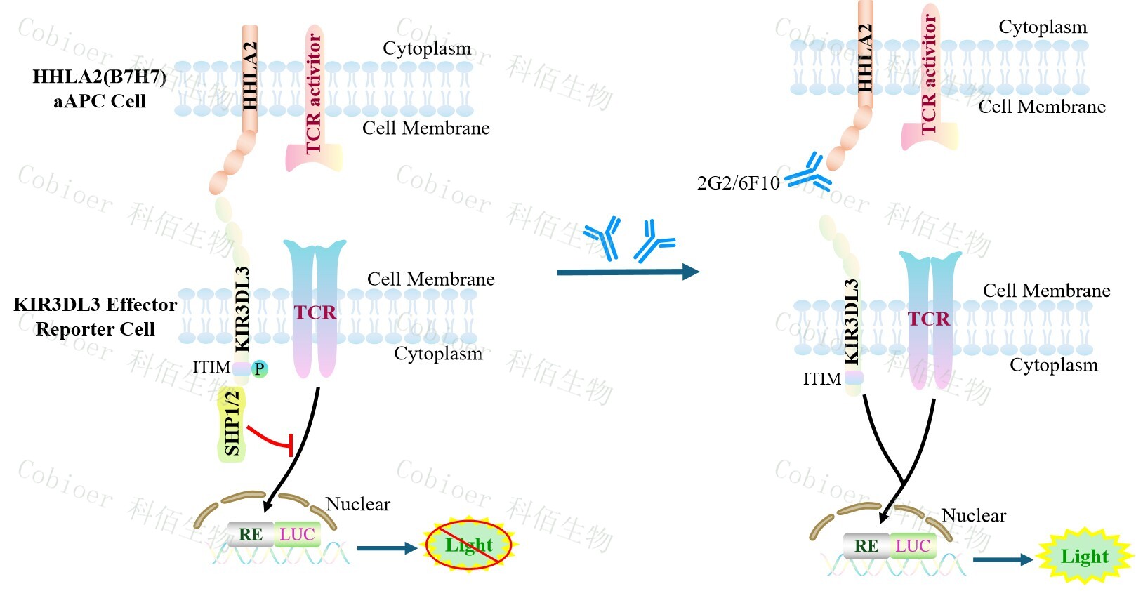 KIR3DL3 Effector Reporter Cell 報(bào)告基因藥靶模型很好的模擬了體內(nèi) KIR3DL3 的信號(hào) 轉(zhuǎn)導(dǎo)過程,原理見下圖所示。![]() Figure 1. KIR3DL3 Effector Reporter Cell 模型原理圖 |