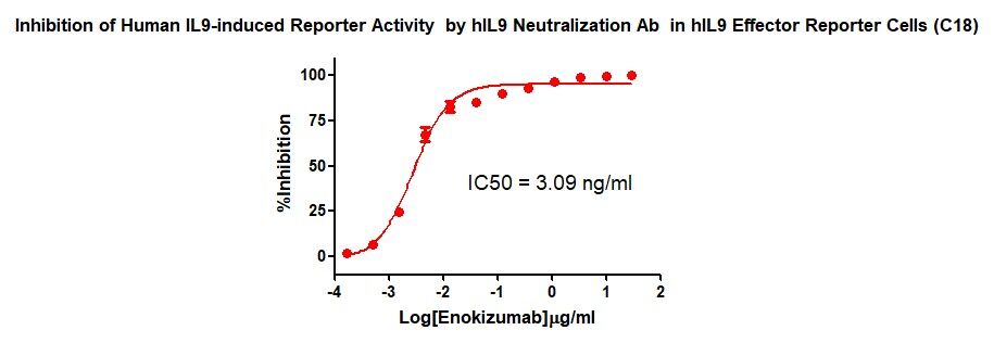 Figure 4.Inhibition of Human IL9-induced Reporter Activity by hIL9 Neutralization Ab in hIL9 Effector Reporter Cells (C18). |