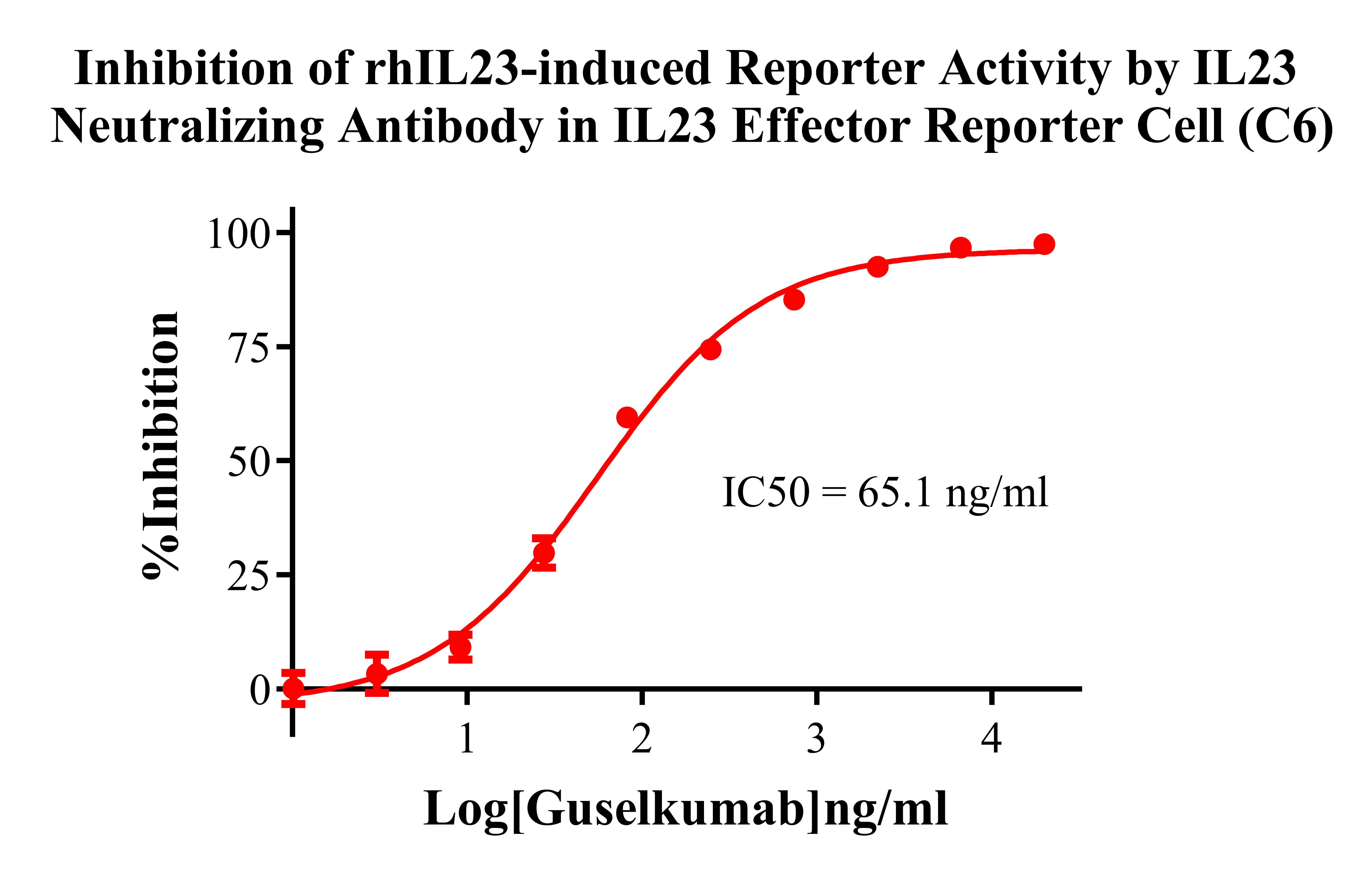 Figure 4.Inhibition of rhIL23-induced Reporter Activity by IL23 Neutralizing Antibody in IL23 Effector Reporter Cell(C6). |