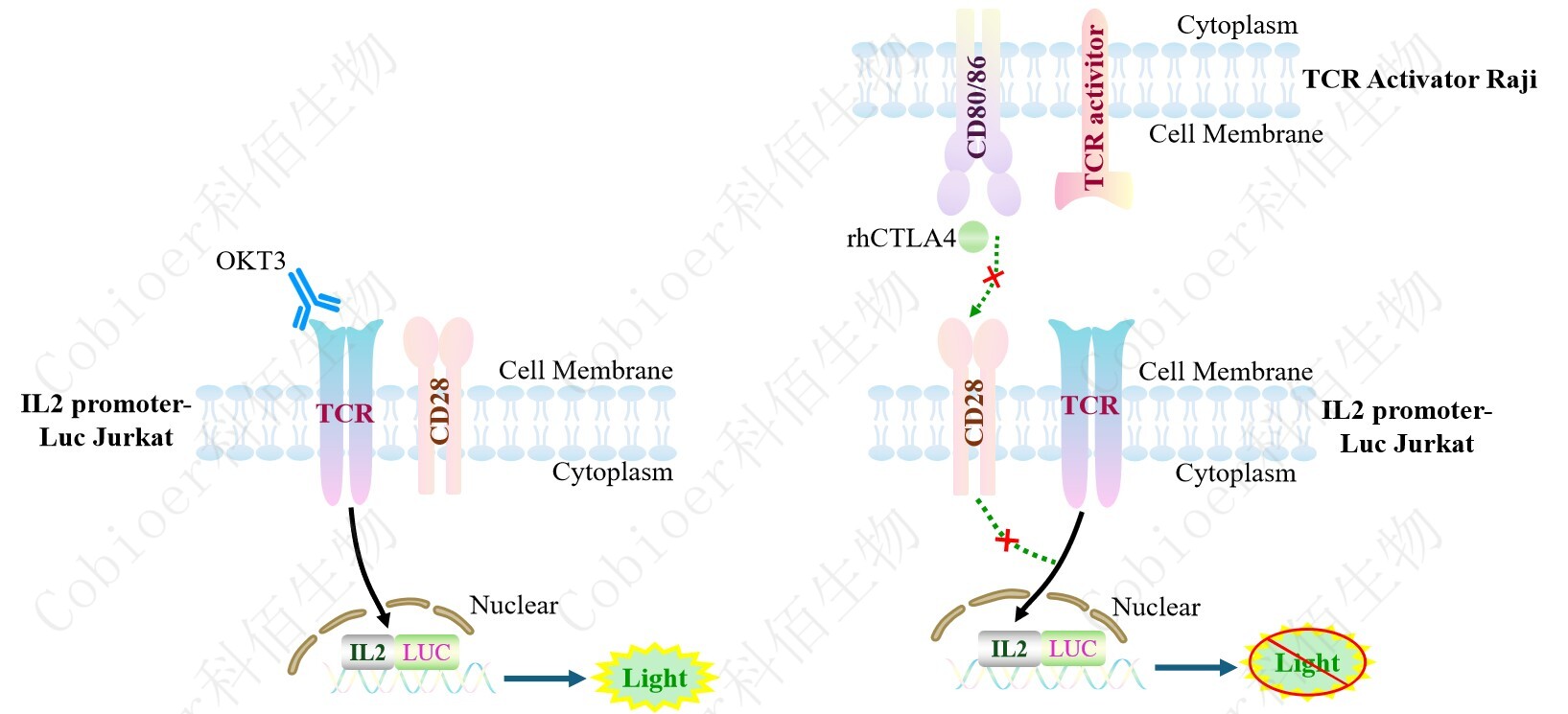 IL2 promoter-Luc Jurkat 報告基因藥靶模型很好的模擬了體內 IL2 的信號轉導過程,原 理見下圖所示。![]() |