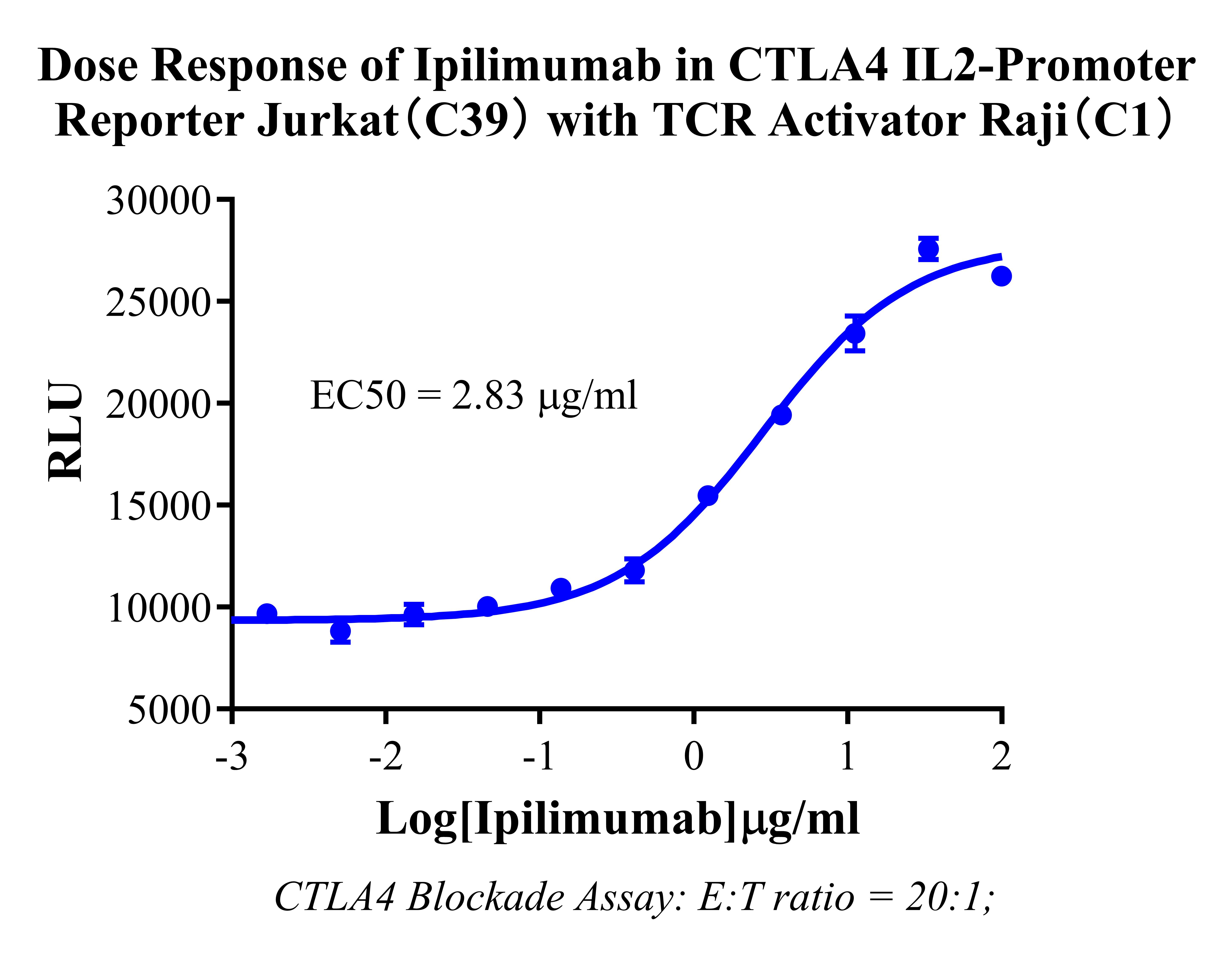 Figure 3. Dose Response of Ipilimumab in CTLA4 IL2-Promoter Reporter Jurkat(C39) with TCR Activator Raji(C1).