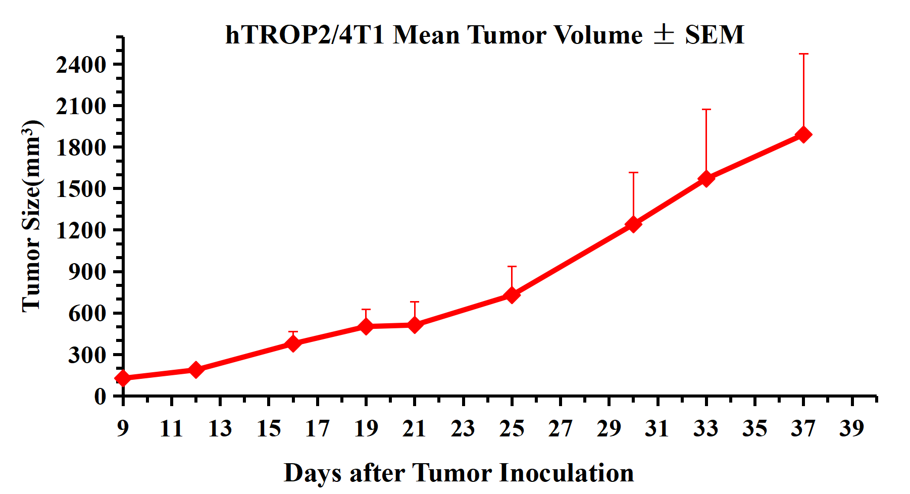Figure 3. hTROP2/4T1 Mean Tumor Volume ± SEM .