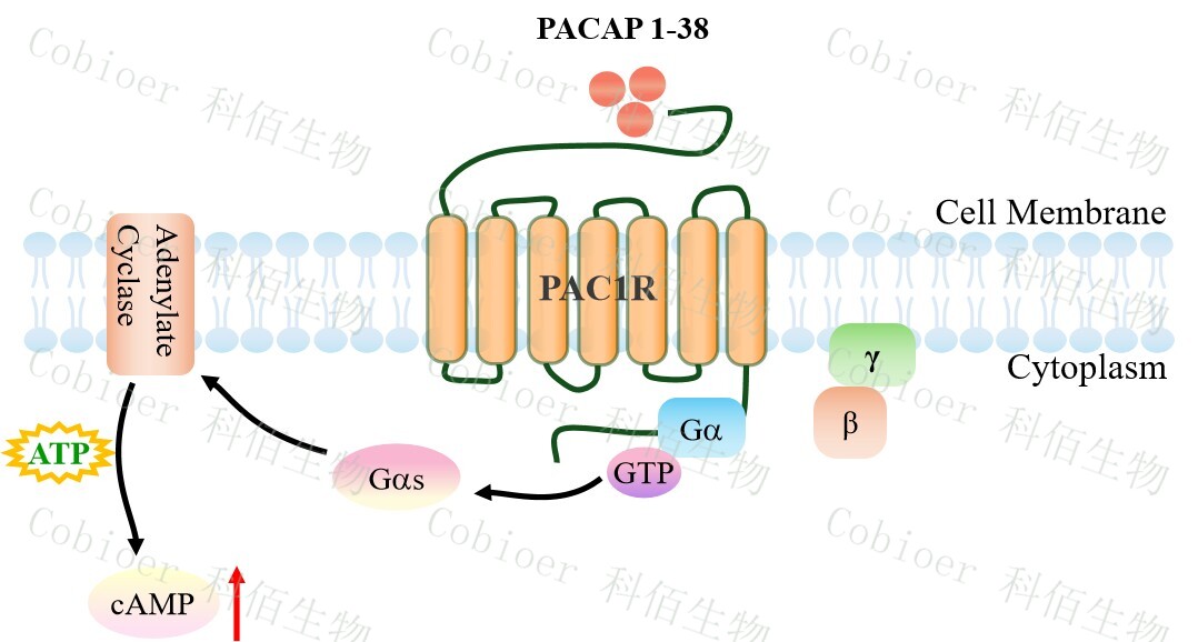PACAP/VIP 受體家族屬于 B 類 G 蛋白偶聯(lián)受體(GPCR),包含 PAC1R (PAC1)、 VPAC1R (VPAC1) 和 VPAC2R (VPAC2) 三個(gè)亞型,共同響應(yīng)神經(jīng)肽 PACAP(垂體腺苷酸 環(huán)化酶激活肽)和 VIP(血管活性腸肽)的調(diào)控,通過(guò)激活 Gs/cAMP-PKA 核心信號(hào)軸 (部分亞型偶聯(lián) Gq/PLC)廣泛協(xié)調(diào)神經(jīng)內(nèi)分泌、代謝穩(wěn)態(tài)與免疫調(diào)節(jié)。 |
