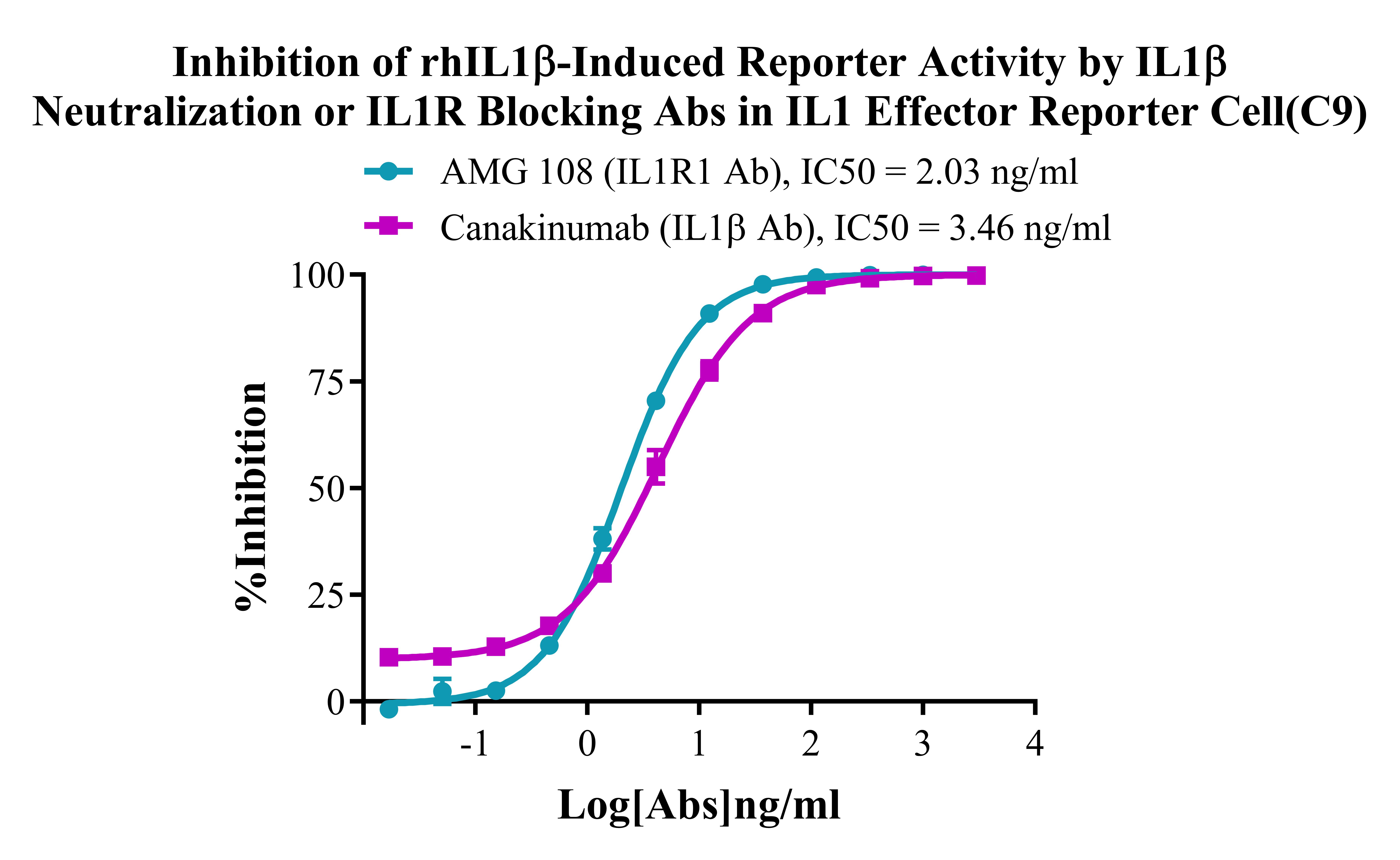 IV. Representative Data![]() Figure 2. Dose Response of Recombinant Human IL1β in IL1 Effector Reporter Cell (C9). ![]() Figure 3. Inhibition of rhIL1β-Induced Reporter Activity by IL1β Neutralization or ILlR Blocking Abs in IL1 Effector Reporter Cell(C9). |