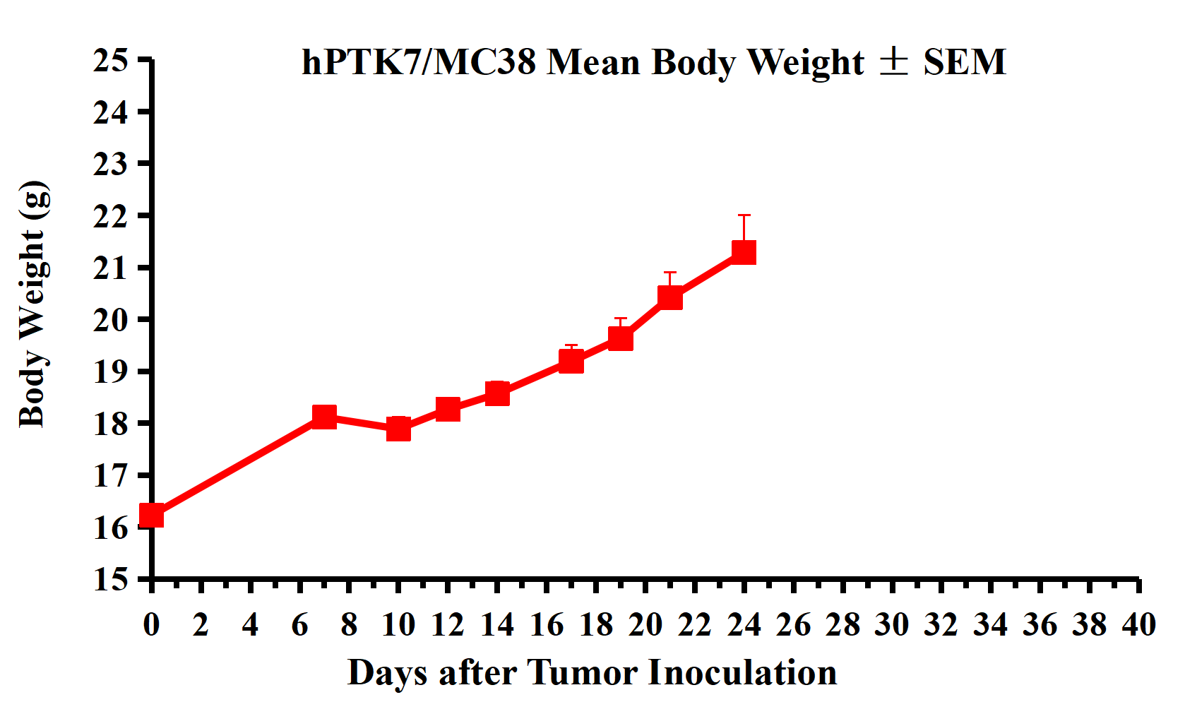 Figure 2. hPTK7/MC38 Mean Body Weight ± SEM.