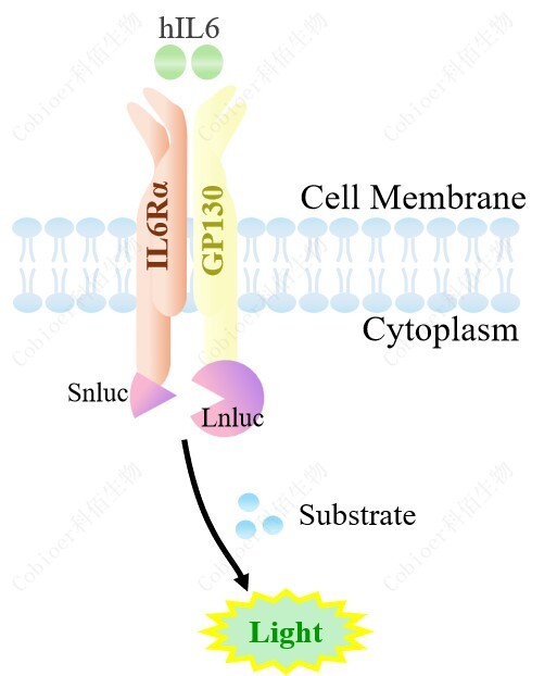 IL6RA&IL6ST Dimerization CHO 報(bào)告基因藥靶模型很好的模擬了體內(nèi) IL6 的信號轉(zhuǎn)導(dǎo)過程,原理見下圖所示。