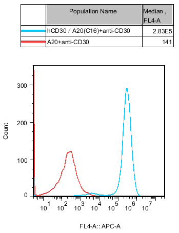 IV. Representative Data![]() Figure 1. Recombinant hCD30/A20 stably expressing hCD30. |