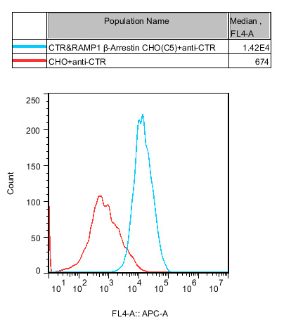 IV. Representative Data![]() Figure 2. WB of CTR&RAMP1 β-Arrestin CHO. ![]() Figure 3. Recombinant CTR&RAMP1 β-Arrestin CHO stably expressing CTR. ![]() Figure 4. Dose response of Agonists in CTR&RAMP1 β-Arrestin CHO(C5). |