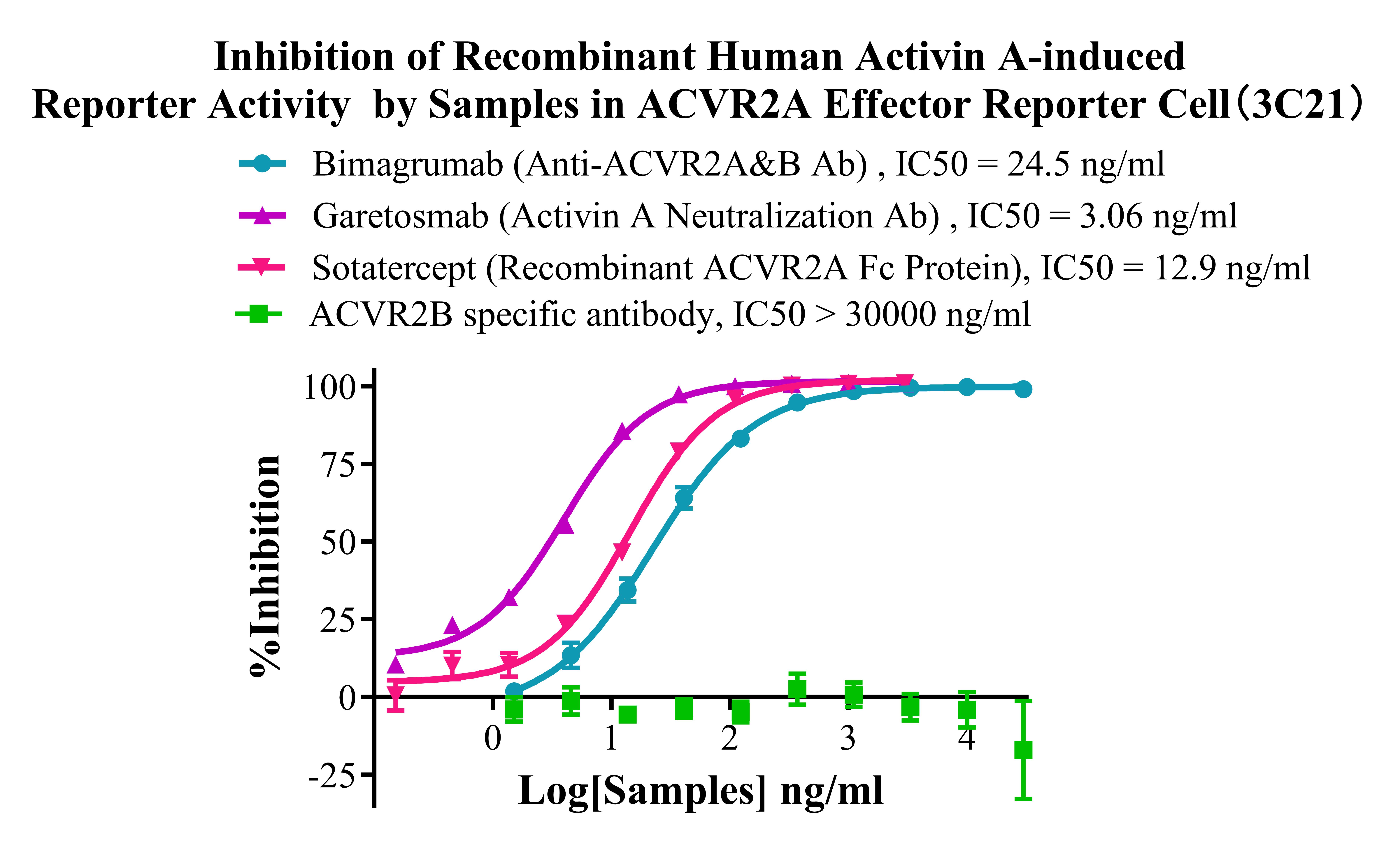 Figure 5. Inhibition of Recombinant Human Activin A-induced Reporter Activity by Samples in ACVR2A Effector Reporter Cell (3C21).