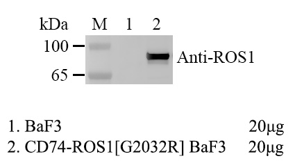 1.WB of CD74-ROS1 [G2032R] BaF3 Figure 2. WB of CD74-ROS1 [G2032R] BaF3. 2.Sanger of CD74-ROS1 [G2032R] BaF3 |