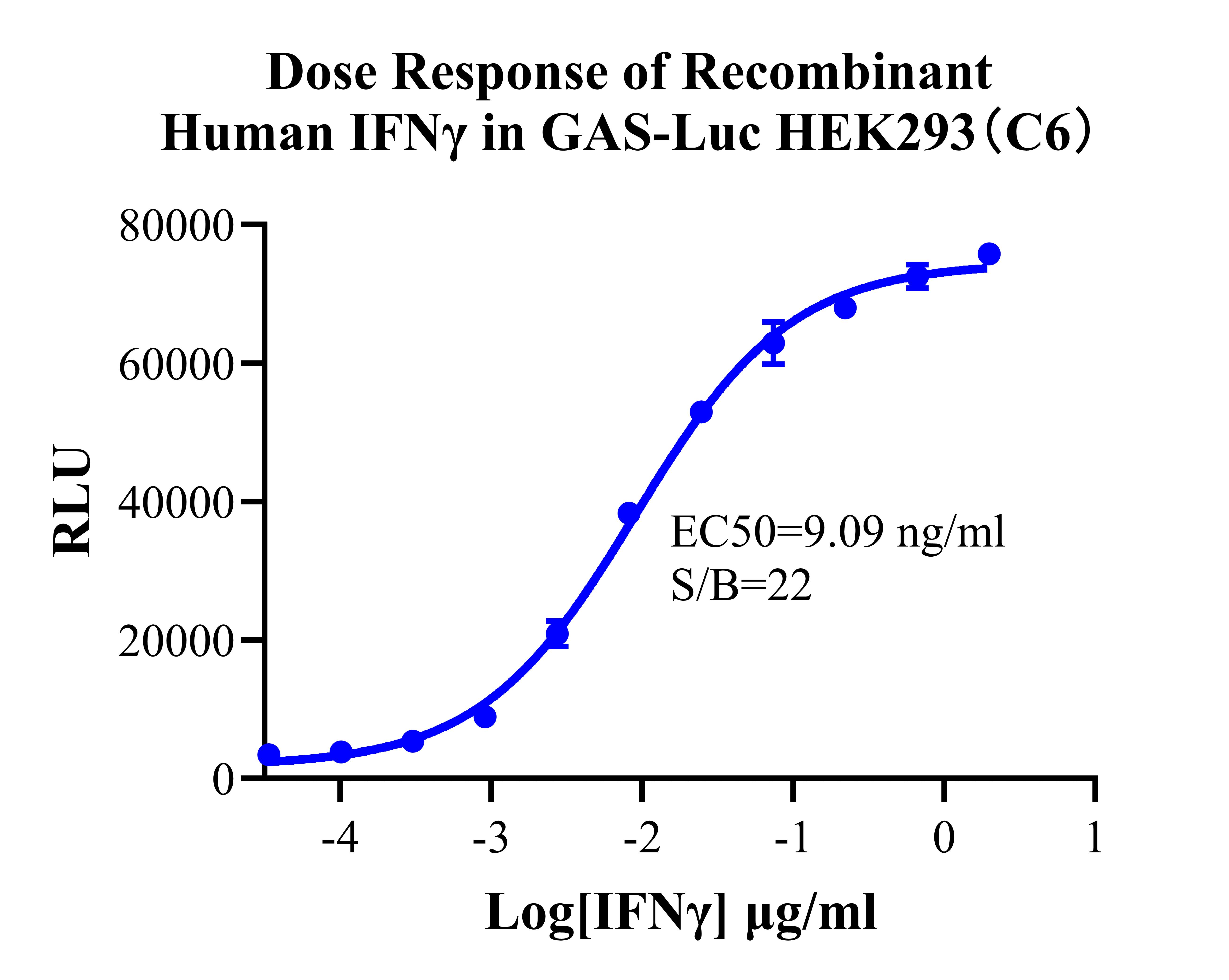 GAS-Luc HEK293 報告基因細(xì)胞,是由 GAS 調(diào)控并表達(dá) Luc 熒光素酶 報告基因的 HEK293 細(xì)胞。IFNγ與受體結(jié)合,激活 GAS 的原理見下圖所示。