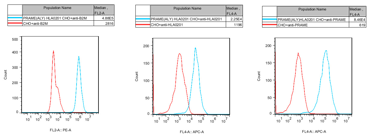 IV. Representative Data![]() Figure 1. Recombinant PRAME(ALY) HLA0201 CHO stably expressing PRAME & HLA0201&B2M. |