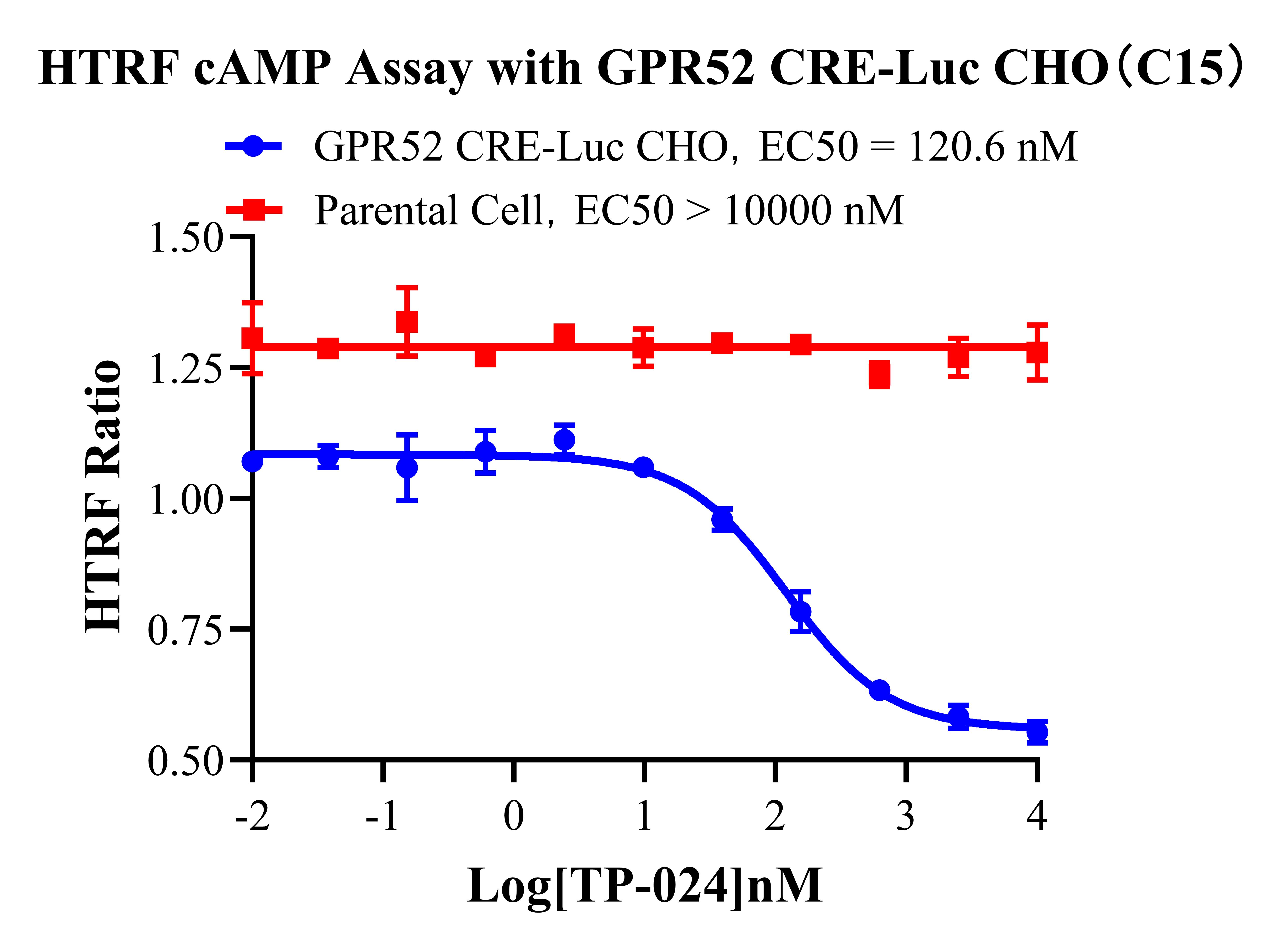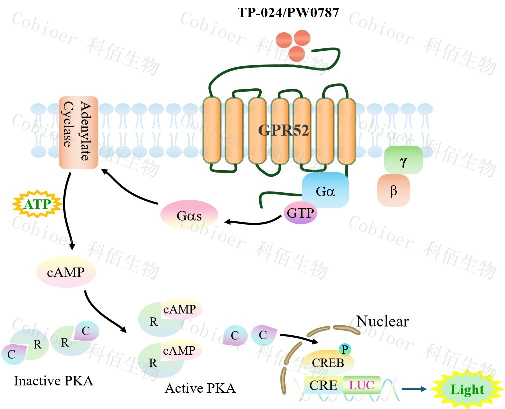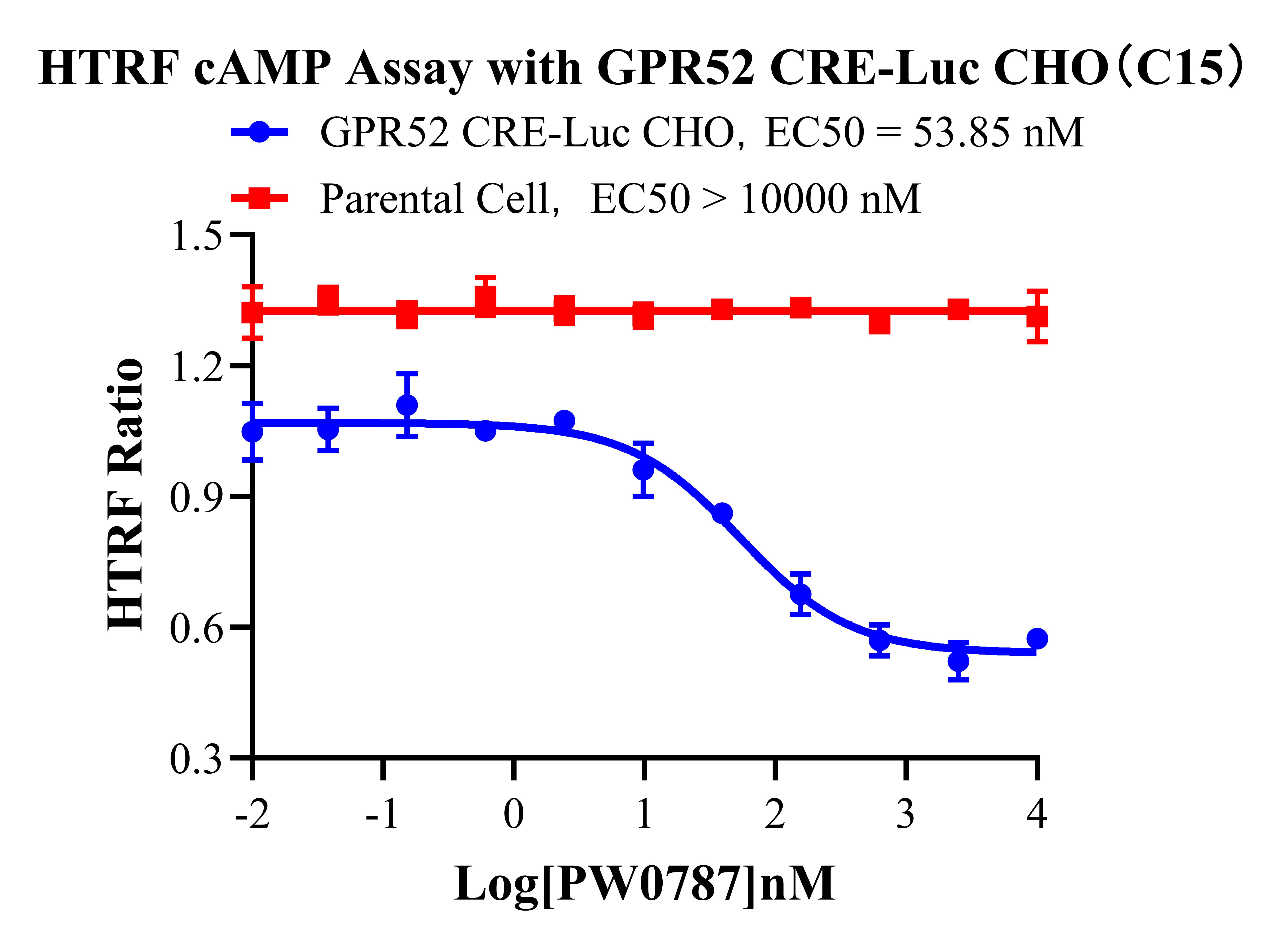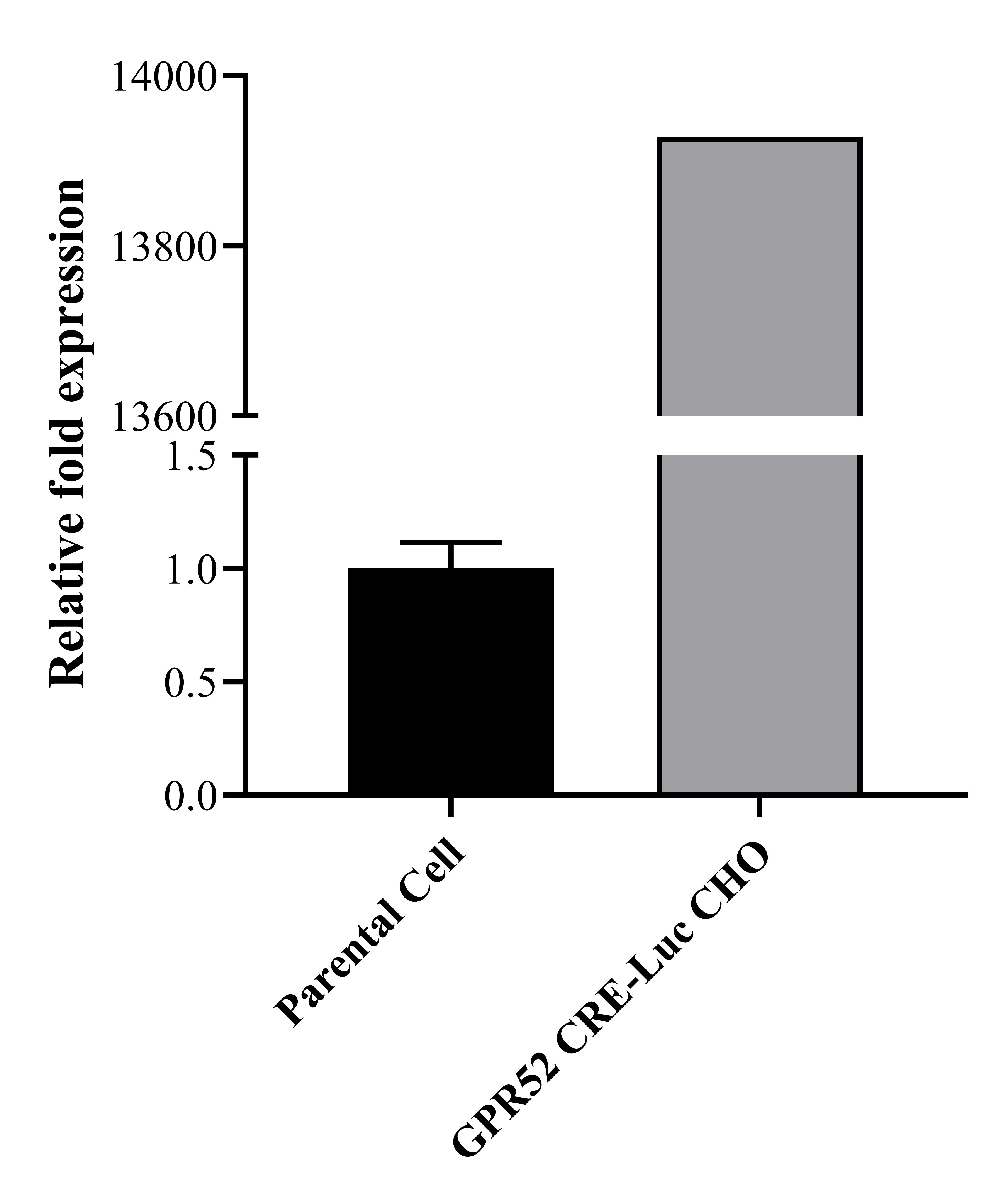 GPR52 CRE-Luc CHO 報告基因藥靶模型很好的模擬了體內(nèi) GPR52 的信號轉(zhuǎn)導過程, 原理見下圖所示。![]() Figure 1. GPR52 CRE-Luc CHO 細胞模型原理圖 |