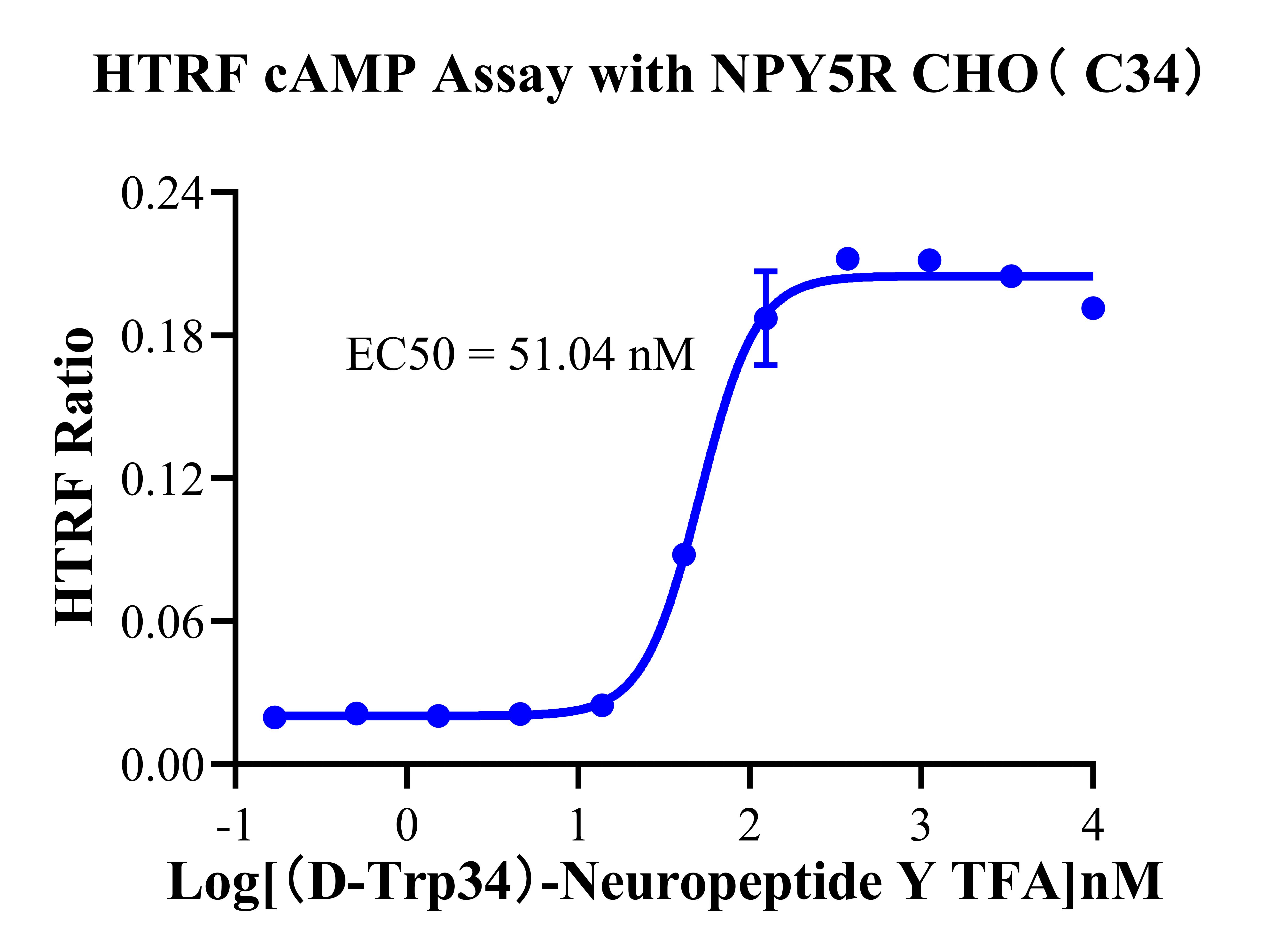 神經(jīng)肽 Y(NPY)作為一種重要的神經(jīng)遞質,廣泛分布于脊椎動物的中樞神經(jīng)系統(tǒng)和 周圍神經(jīng)系統(tǒng)。通過與不同的亞型受體結合,NPY 激活信號轉導通路,從而調節(jié)攝食 、能 量平衡、焦慮、晝夜節(jié)律和其他生理過程。NPY 受體(NPYR)屬于 G 蛋白偶聯(lián)受體家族, 目前在哺乳動物中已鑒定出 5 種受體基因亞型,即 NPY1R、NPY2R、NPY4R、NPY5R 和 NPY6R。 NPY5R 主要響應內源性配體神經(jīng)肽 Y(NPY)、肽 YY(PYY)及胰腺多肽(PP), 通過偶聯(lián) Gi/o 蛋白抑制腺苷酸環(huán)化酶活性、降低細胞內 cAMP 水平,同時激活 MAPK/ ERK 通路并動員鈣離子信號,在下丘腦攝食中樞、情緒調節(jié)環(huán)路及能量代謝網(wǎng)絡中發(fā)揮核 心作用,其異?;罨c肥胖、糖尿病及情緒障礙密切相關。 |
