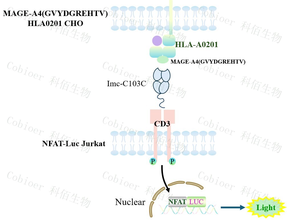 HLA-A*0201-MAGEA4 復(fù)合物是人類白細(xì)胞抗原(HLA)Ⅰ類分子與 MAGEA4 抗原肽的復(fù)合體,屬于主要組織相容性復(fù)合體(MHC)Ⅰ類家族成員。該復(fù)合物常用于 T 細(xì)胞 受體(TCR)療法,通過激活 T 細(xì)胞以識(shí)別并殺傷腫瘤細(xì)胞,原理見下圖所示。![]() Figure 1. MAGE-A4(GVYDGREHTV) HLA0201 CHO 細(xì)胞模型圖 |