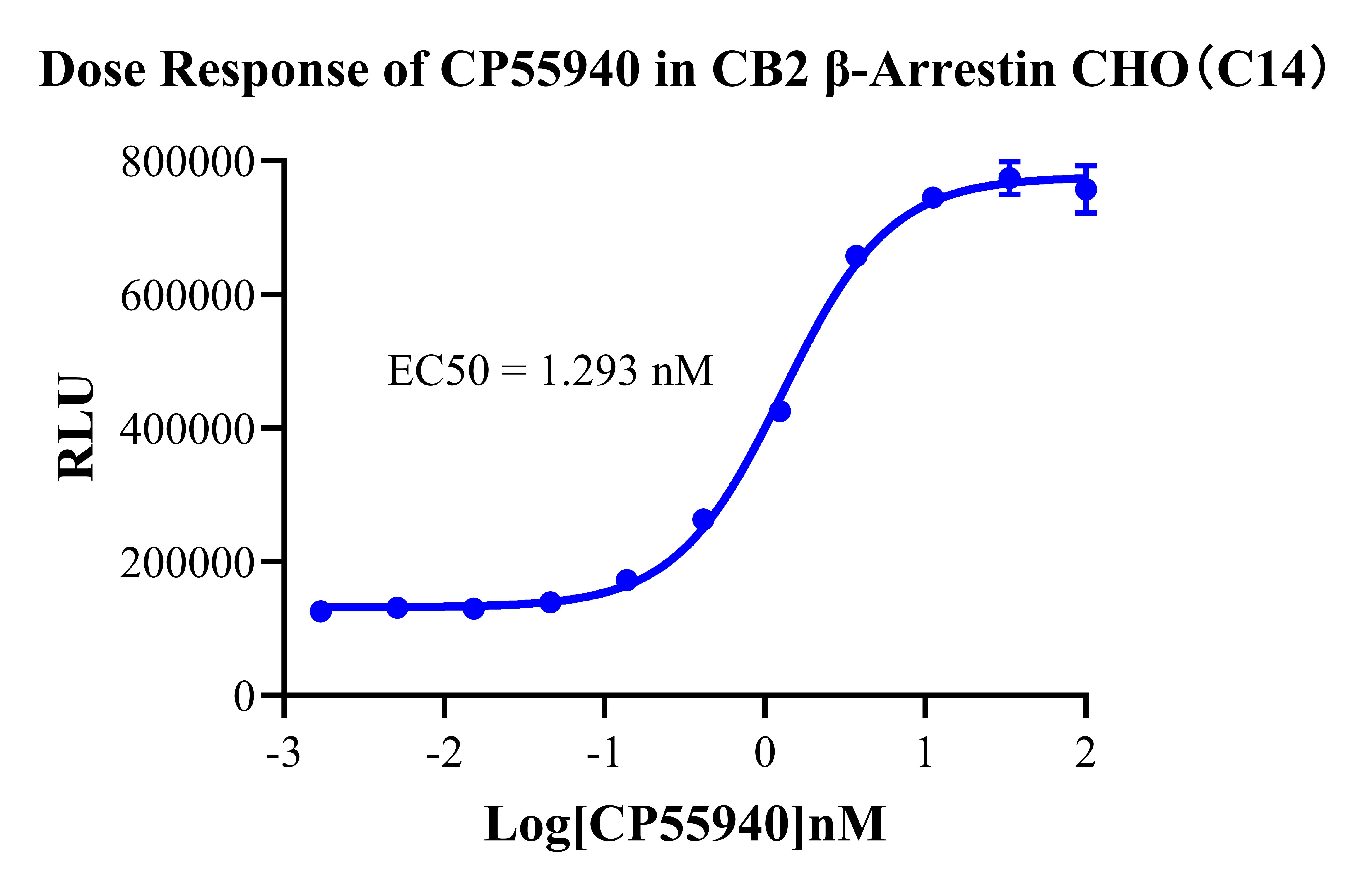 V. Representative Data![]() Figure 2. Recombinant CB2 β-Arrestin CHO stably expressing CB2. ![]() Figure 3. Dose Response of CP55940 in CB2 β-Arrestin CHO(C14). |