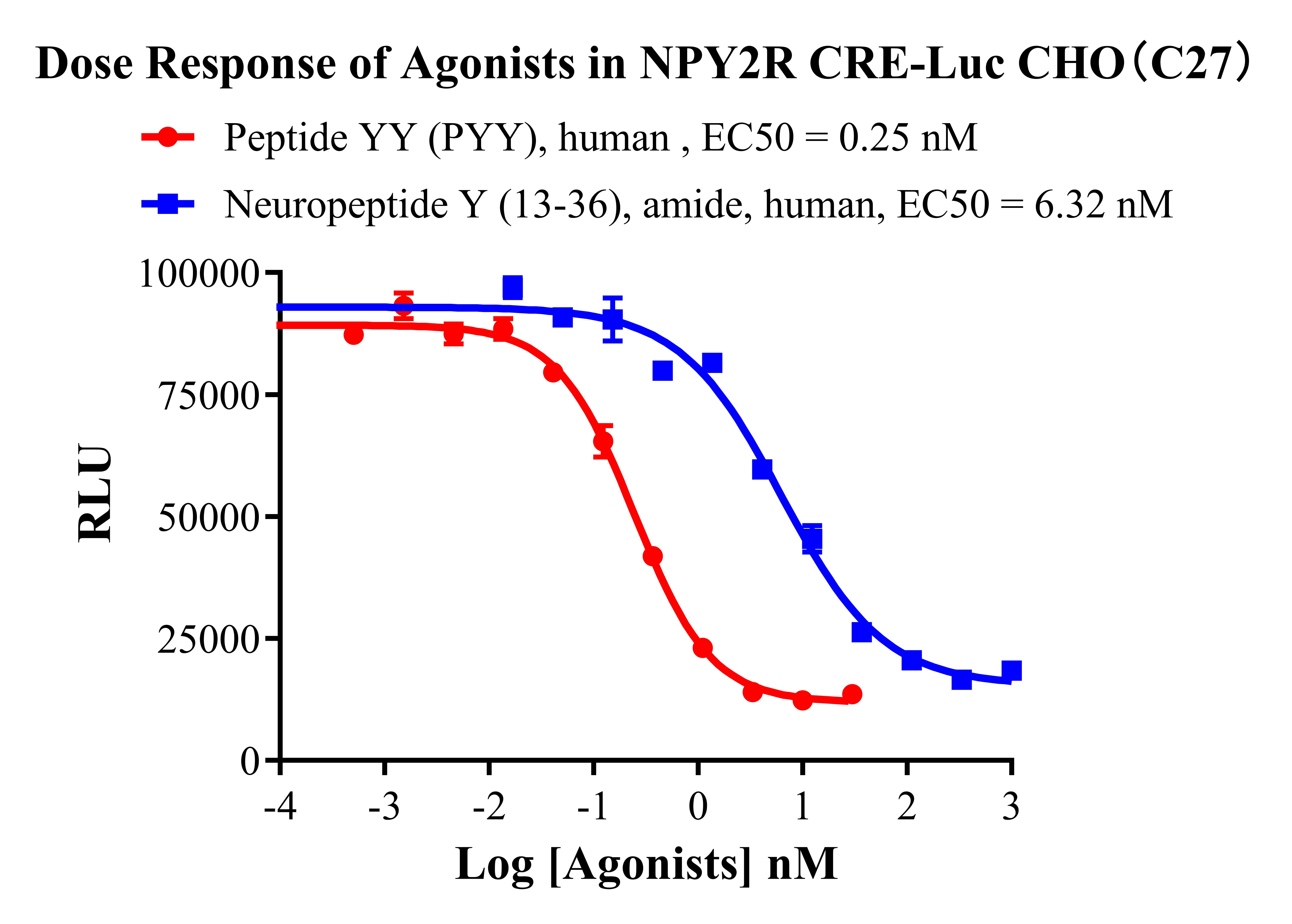 V. Representative Data![]() Figure 2. Recombinant NPY2R CRE-Luc CHO stably expressing NPY2R. ![]() Figure 3. Dose Response of Agonists in NPY2R CRE-Luc CHO(C27). |