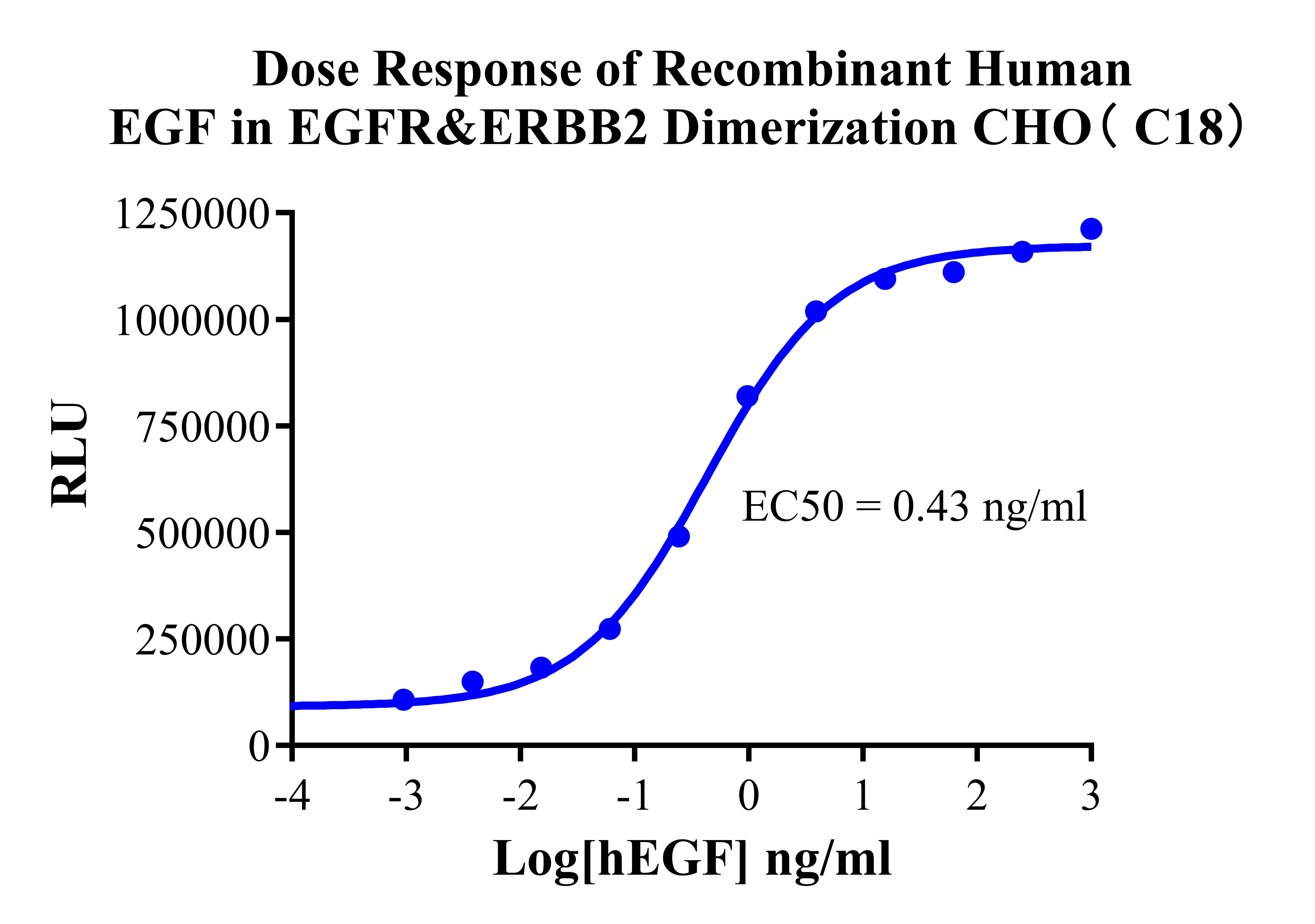 ![]() Figure 2. Recombinant EGFR & ERBB2 Dimerization CHO stably expressing EGFR & ERBB2. ![]() Figure 3. Dose Response of Recombinant Human EGF in EGFR&ERBB2 Dimerization CHO (C18).