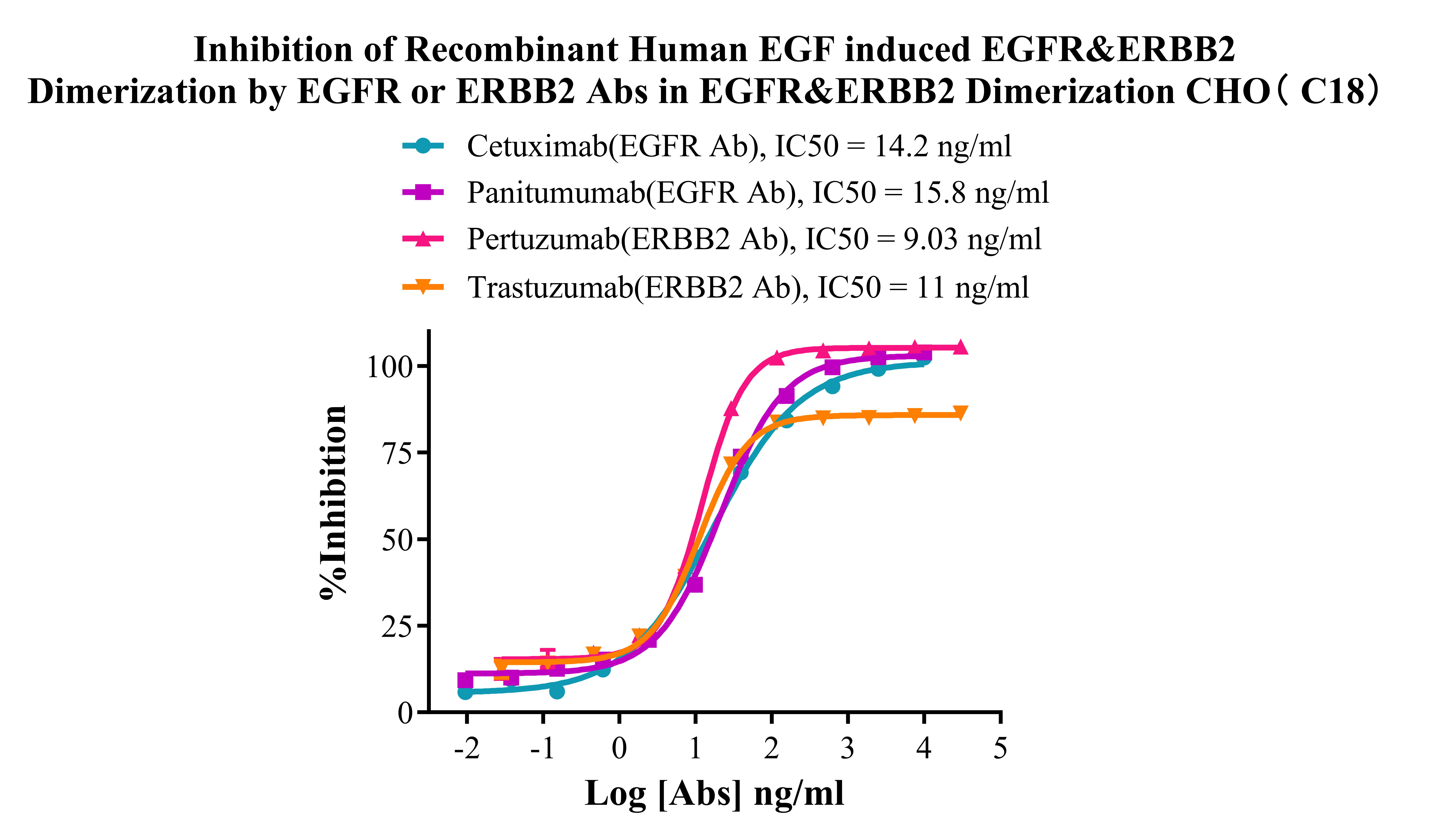 ![]() Figure 4. Inhibition of Recombinant Human EGF induced EGFR&ERBB2 Dimerization by EGFR or ERBB2 Abs in EGFR&ERBB2 Dimerization CHO (C18). |