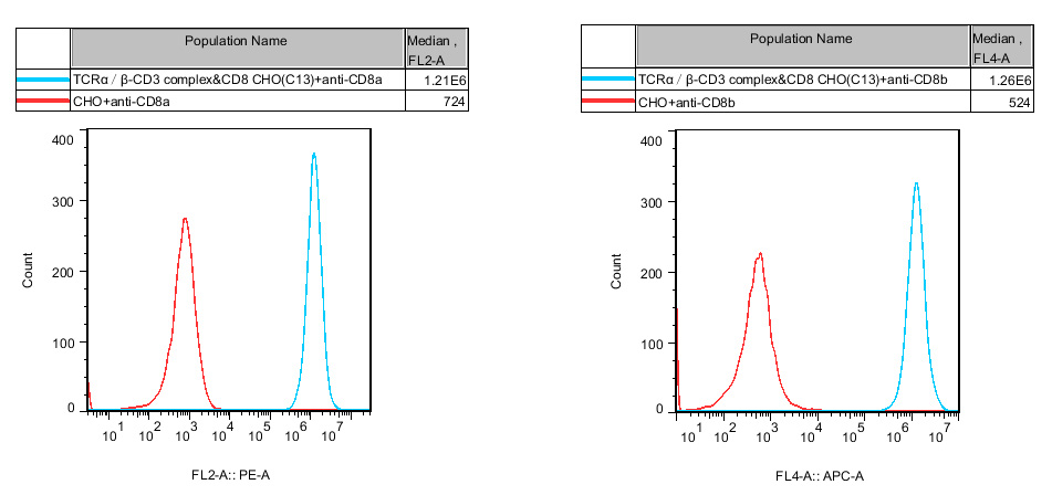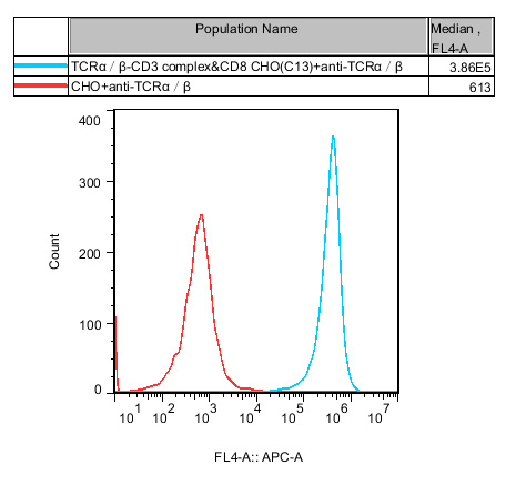 ![]() Figure 1. Recombinant TCRα/β-CD3 complex&CD8 CHO stably expressing TCRα/β.