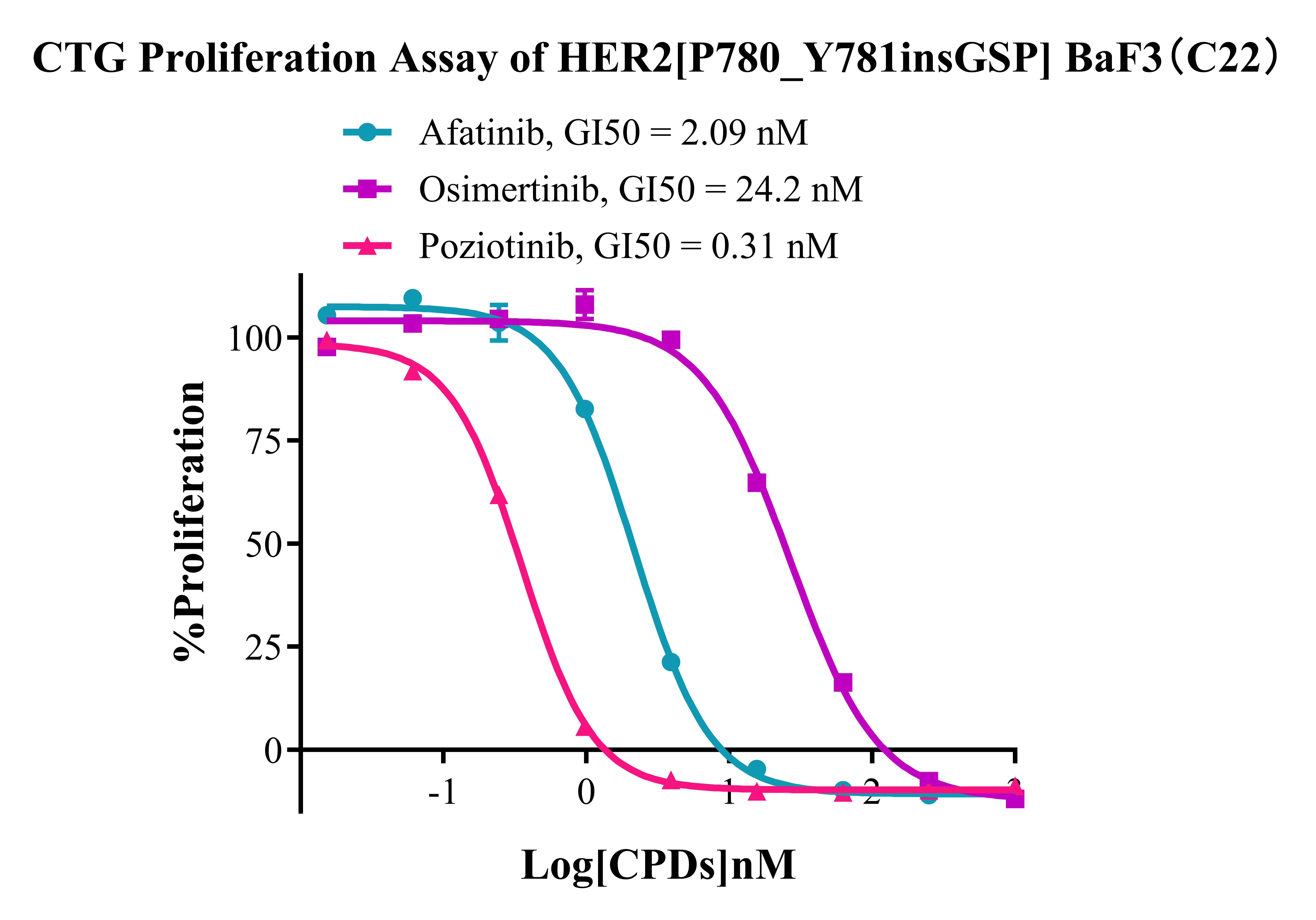 Figure 3.CTG Proliferation Assay of Her2 [P780_ Y781insGSP] BaF3 (C22). |