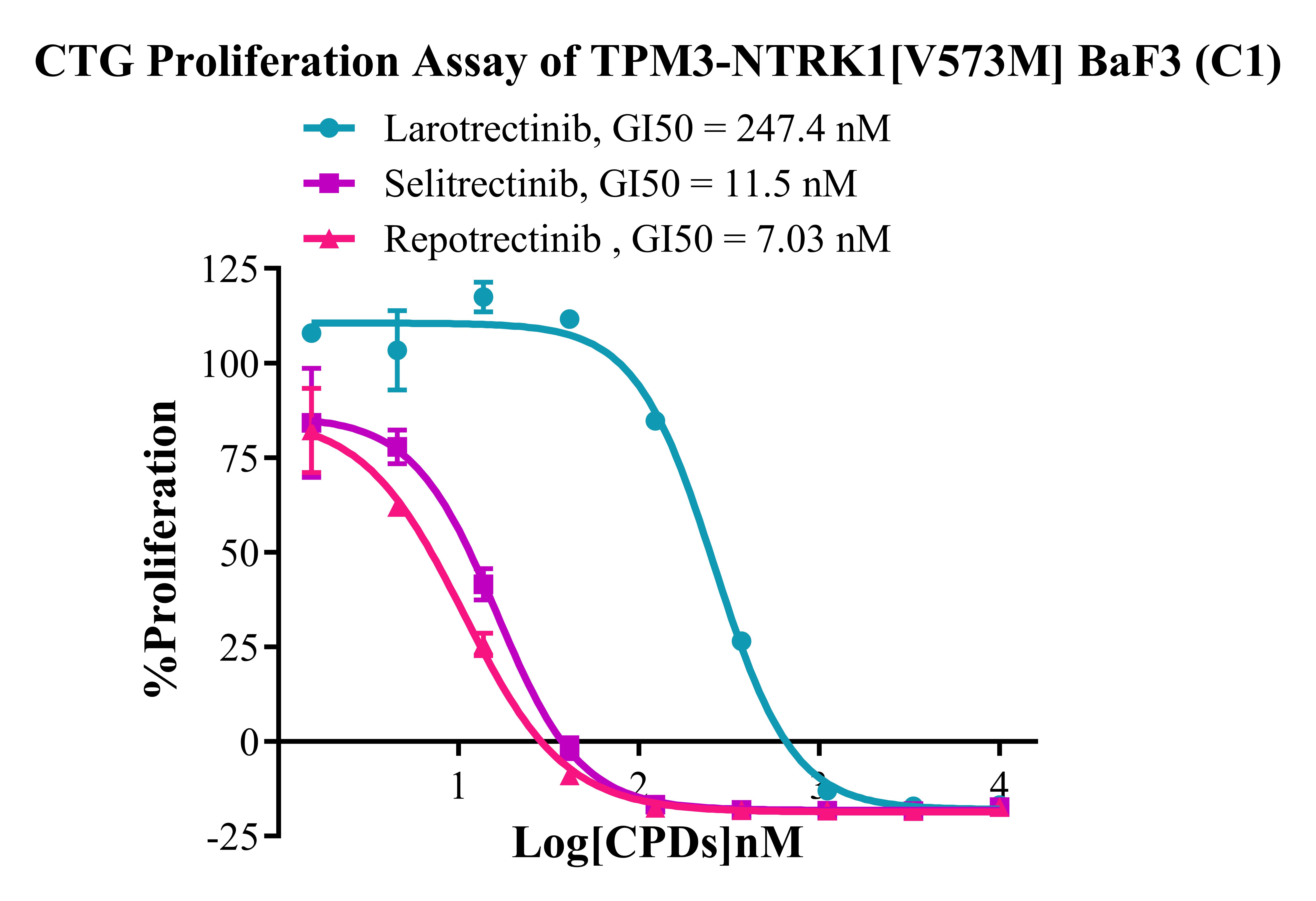 Figure 2. CTG Proliferation Assay of TPM3-NTRK1 [V573M] BaF3(C1). |