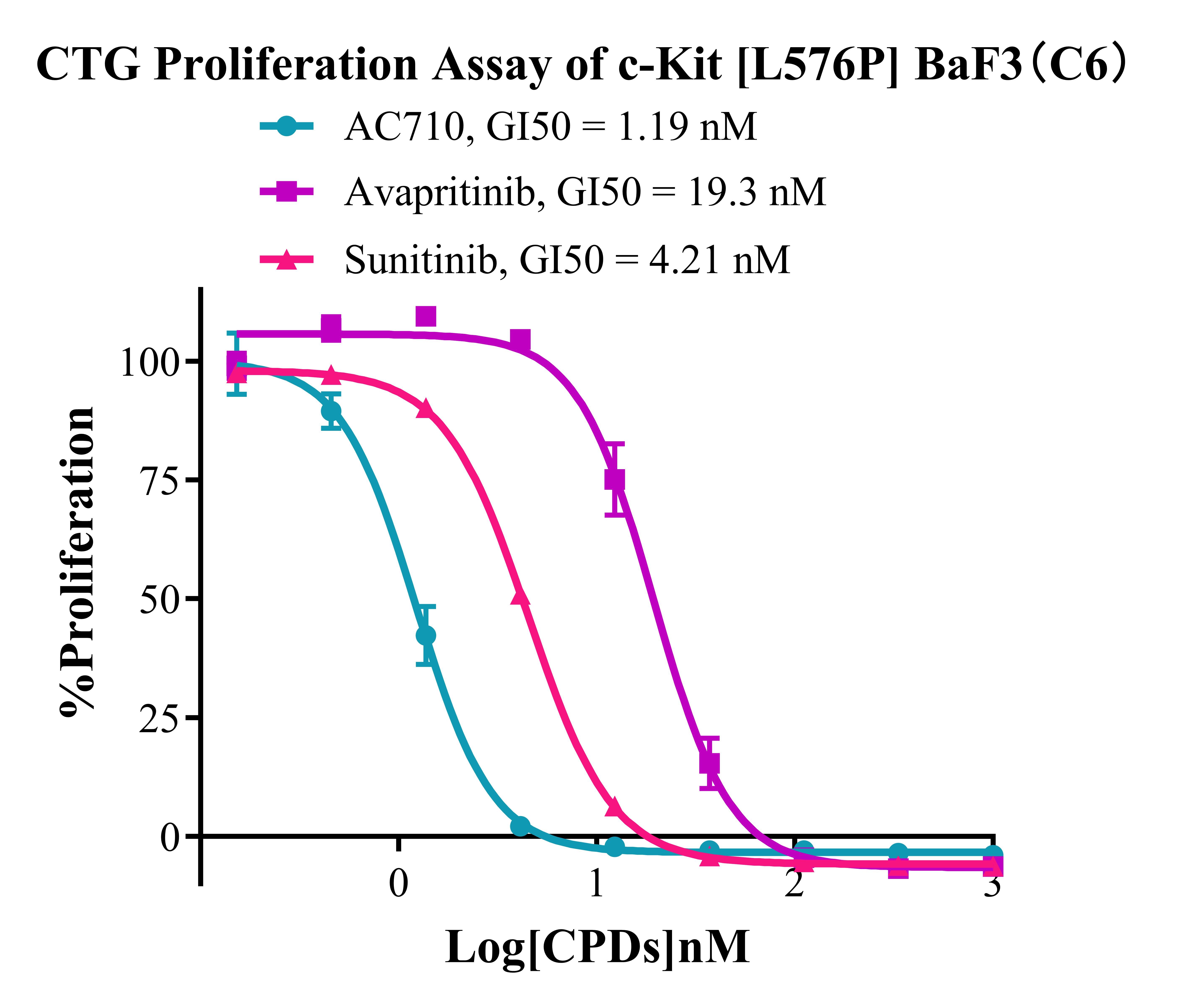c-Kit[L576P] BaF3 藥靶細(xì)胞,通過轉(zhuǎn)導(dǎo)突變狀態(tài)的 c-Kit[L576P] 基因到 BaF3 細(xì)胞系中,穩(wěn)定表達(dá)人突變形態(tài)下的 c-Kit[L576P] 基因。