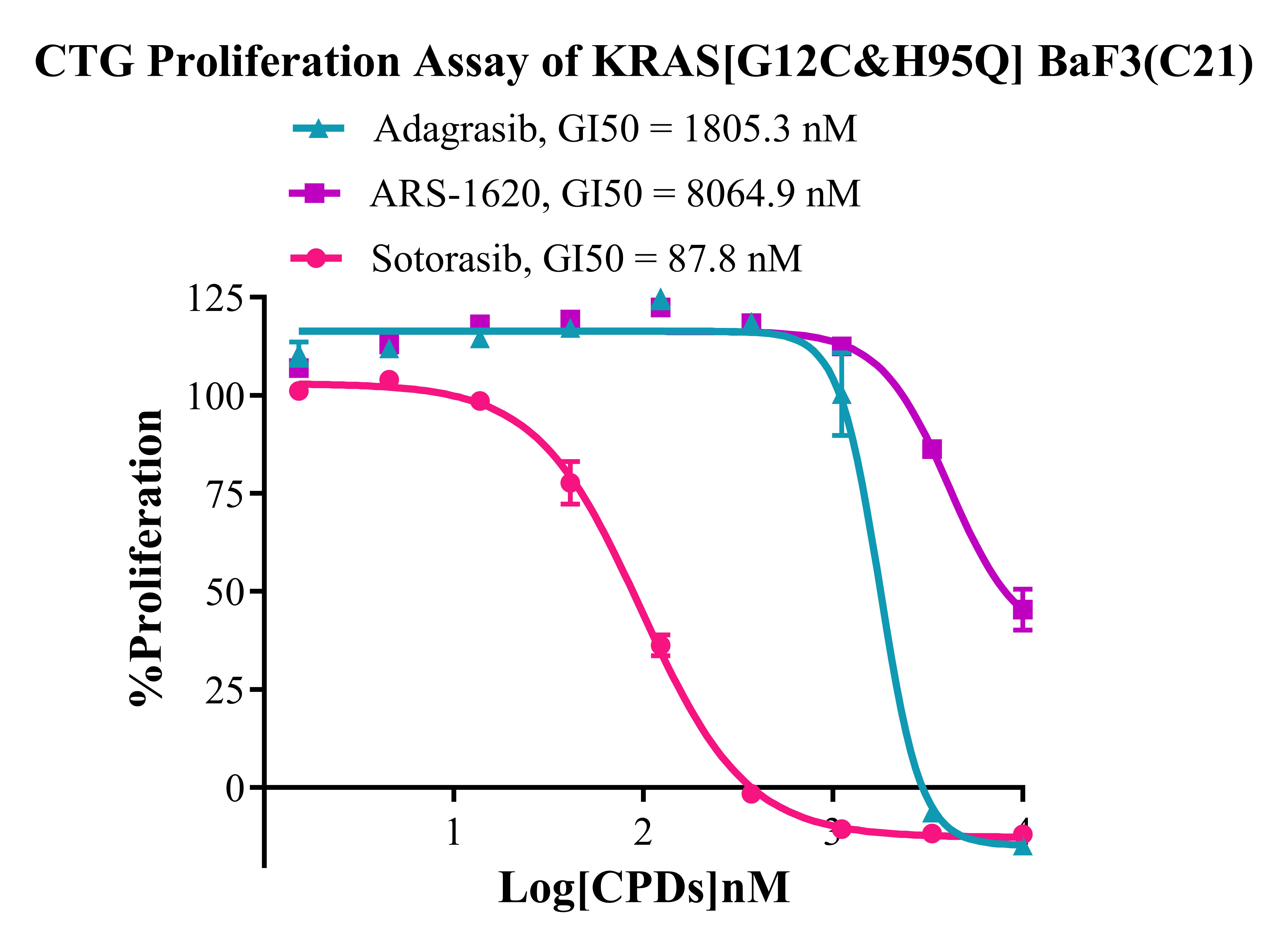 Figure 3. CTG Proliferation Assay of KRAS[G12C&H95Q] BaF3(C21). |