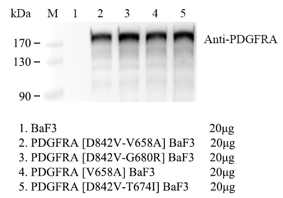 PDGFRA[V658A] BaF3 藥靶細(xì)胞 , 通過轉(zhuǎn)導(dǎo)突變狀態(tài)的 PDGFRA[V658A] 基因到 BaF3 細(xì)胞系中,穩(wěn)定表達(dá)人突變形態(tài)下的 PDGFRA[V658A] 基因。
