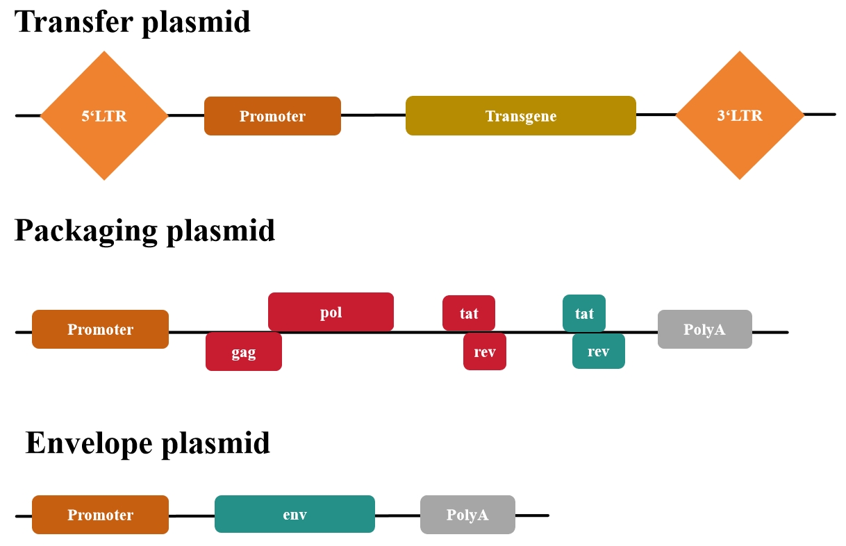 第一代慢病毒質(zhì)粒缺乏安全性改進(jìn)以及無法生產(chǎn)具有復(fù)制能力的慢病毒(即產(chǎn)生能夠感染細(xì)胞并進(jìn)一步自我復(fù)制的病毒顆粒),基本已經(jīng)廢棄使用了。