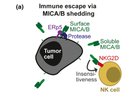 近年來,也有文章揭露NKG2D的可溶性配體如MICA/B可以限制免疫檢查點(diǎn)阻斷的功效,介導(dǎo)惡性腫瘤細(xì)胞逃避免疫識(shí)別途徑。